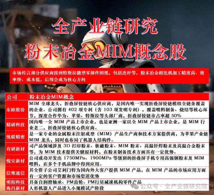 人形机器人轻量化, 粉末冶金和MIM方向梳理(附MIM概念股)